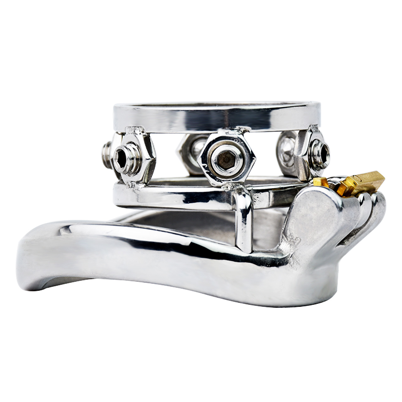 The “cage” portion of the device features six (6) screwable spikes that will dig into the submissives penis anytime it tries to get hard. The screws allow you to decide how much you want the spikes to dig in – whether it’s just the tip, or perhaps you really want to teach them a lesson and bury the spikes in all of the way.