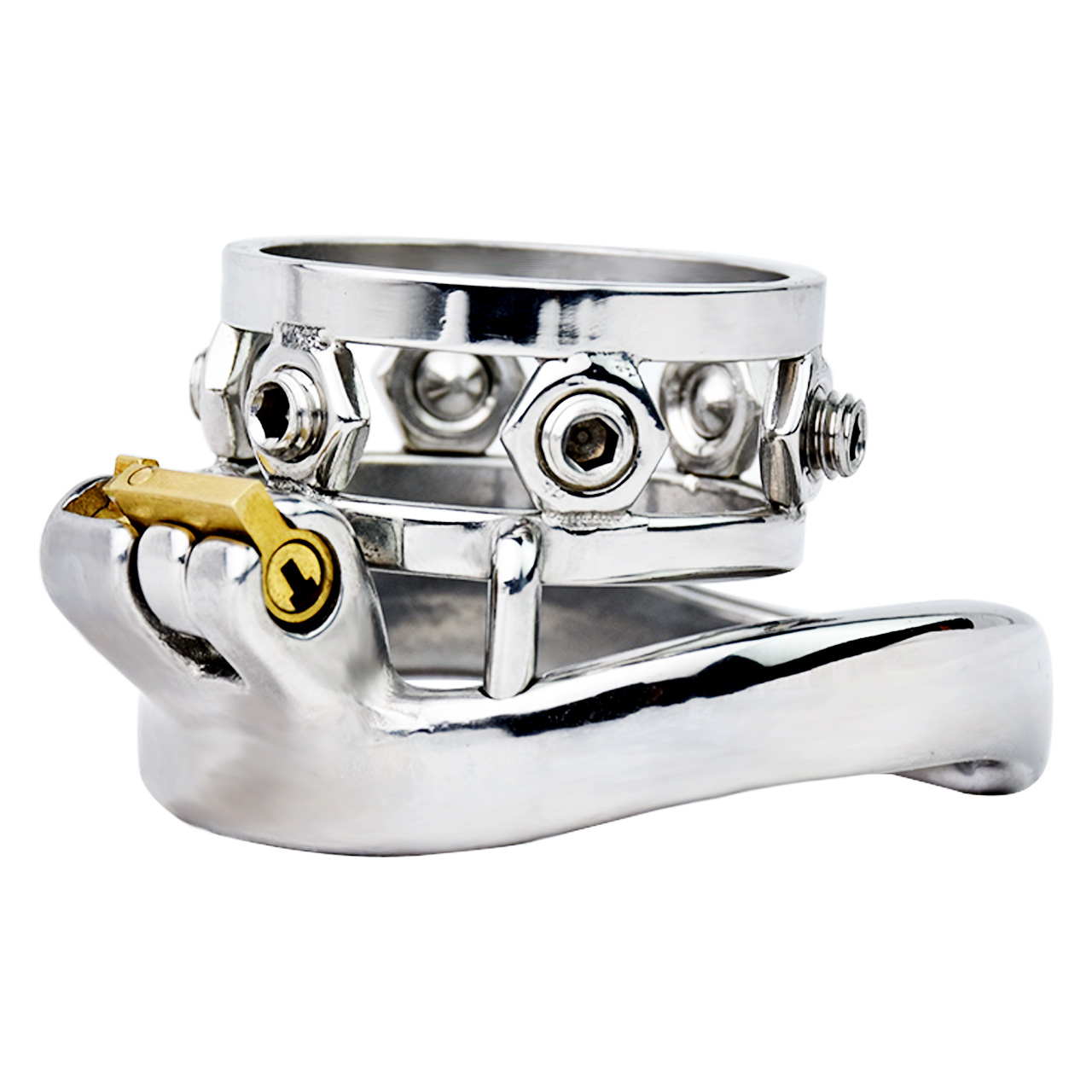 If you’re still looking to torment your submissive even more, add in the additional spiked ring attachment to give them a second row of spikes behind the cage!
